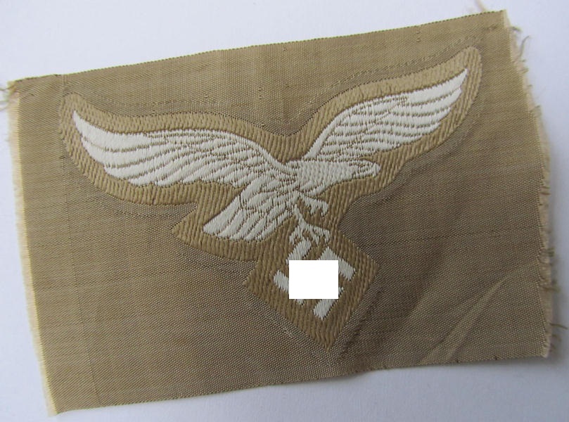 This is possibly one of the most rarest LW 'BeVo' cap-eagles to encounter: a truly nice example of the WH (Luftwaffe) BeVo tropical cap-eagle, specifically designed for usage on the tropical LW so-called: 'Hermann Meyer' cap. The piece on offer here was never issued and is in mint condition (it is just a bit wrinkled and might need some ironing). This is only the second such piece I ever had on offer: I deem the high asking-price accordingly for this extremely rare badge. Caps without insginia are sometimes offered for sale: the specific inisignia are as far as I know almost never offered for sale. A very rare and desirable LW eagle!