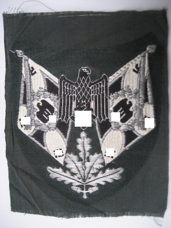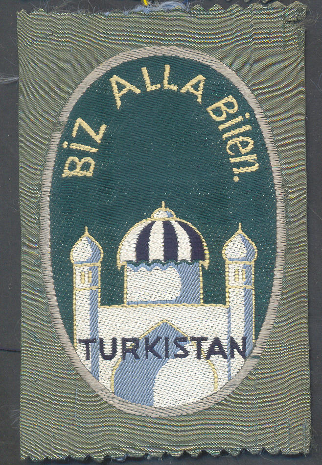 This is a nice and truly rare BeVo woven armshield - 1st. pattern - for a Turkistan volunteer of the Turkistan Legion. This shield originates from a large collection of 'Ost-truppen' insignia, I recently acquired. This is one is truly one of the more rarer shields to encounter. This shield is in mint, unissued condition and is very different from the many copies that are in existance. This first model (introduced in 1942) saw only limited use and was replaced by the second model in 1943. A very nice and rare shield!