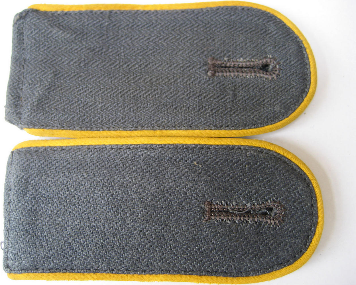 This is a matching pair of WH Luftwaffe HBT boards having the golden-yellow 'silk-like' piping for a soldier of the 'Flieger-/Fallschirmjäger' troops. These blue HBT boards are considered rare and were also used by the LW field-divisions (for example on the specific FD-camouflaged smocks!). The set is IMO only slightly used. A rare pair!