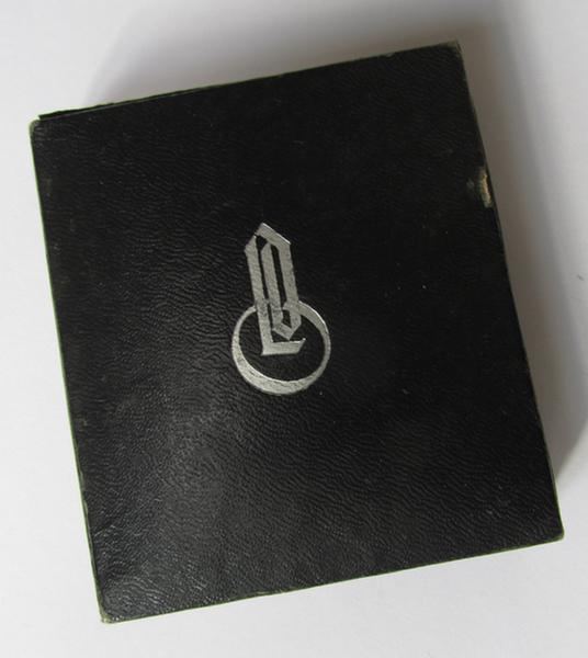 This is a truly very nice - and desirable! - example of a neatly maker-marked (ie. 'L/18'-marked-), specific albeit regrettably empty so-called: 'LDO-etui', as intended to accomodate an Iron Cross 2nd Class (or 'Eisernes Kreuz II.Klasse') as produced by the maker: 'B.H. Mayer's Kunstprägeanstalt', in overall nice and/or only moderately used ie. issued condition. As stated was the etui intended to accomodate a maker-marked- (ie. 'L/18'-marked-) Iron Cross 2nd Class (or 'Eisernes Kreuz II.Klasse') as produced by the company 'B.H. Mayer's Kunstprägeanstalt', based in the town of Pforzheim. The etui is a dark-blue-coloured example (sized: 8 x 7 x 1,5 cms.) which has a neat, specifally 'cut-out'-section to accomodate the IC and that shows a silver-coloured - and/or fully undamaged! - 'LDO'-logo imprinted on the top (see pictures). The etui shows a blue ink-stamp (that reads: 'L/18') in the top of the lid (see pictures). The etui - which has a yellow-coloured and/or velvet-based lining as to be expected - shows some minimal (storage- ie. handling-) aging but is furthermore not damaged whatsoever: it is ideally fitted to be completed with an 'L/18'-marked ie. by the 'B.H. Mayer's Kunstprägeanstalt' produced Iron Cross 2nd Class. As most certainly known are these specific EKII-etuis hard to encounter and can easily be graded 'very scarce'. Simply a very nice 'LDO'-etui: only the first such empty example I ever had on offer!