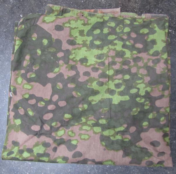 This is a truly very nice - and actually rarely encountered! - Waffen-SS, M31-model shelter-quarter/poncho (ie. 'Zeltbahn'), being of the desirable, so-called: plane-tree #2 (ie. 'Platane') overprint pattern, in overall very nice (ie. virtually mint-/unissued!) condition. The 'M31 Zeltbahn' was a standard issue item and came accompanied with various tenting accessories (such as rope, poles and/or tent-pegs) enabling the soldier to utilize his quarter-shelter with three others to form a small tent. These equipment-pieces were carried mounted on the - also standard issued - 'A-Rahmen' (or: A-frames). The plane-tree camouflage pattern was originally developed in 1936 and was utilized by the members of the 'SS-Verfügungstruppen' until a new 'plane tree'-pattern was developed in 1940. The new 1940 'plane three camouflage pattern' was produced in six different models that were all utilized throughout the war by the various Waffen-SS troops. The piece on offer here originates from my personal collection and is truly in a wonderfull condition overall: all (zinc-based) rings and/or most buttons are present and in place whereas the piece itself (constructed of water-resistant linnen duck) is totally void of any real damage: the piece retains wonderfull bright- and/or vivid colours and simply cannot be upgraded. It bears a clear imprinted 2 numeral as can be seen on the photos. The piece is also ink-stamped (undecypherable) with an oval-shaped stamp (see photos) and also bears a personalised name (that reads: 'Lexx' or alike). Simply a superb and very desirable Waffen-SS equipment-item that is offered by me for a first time!