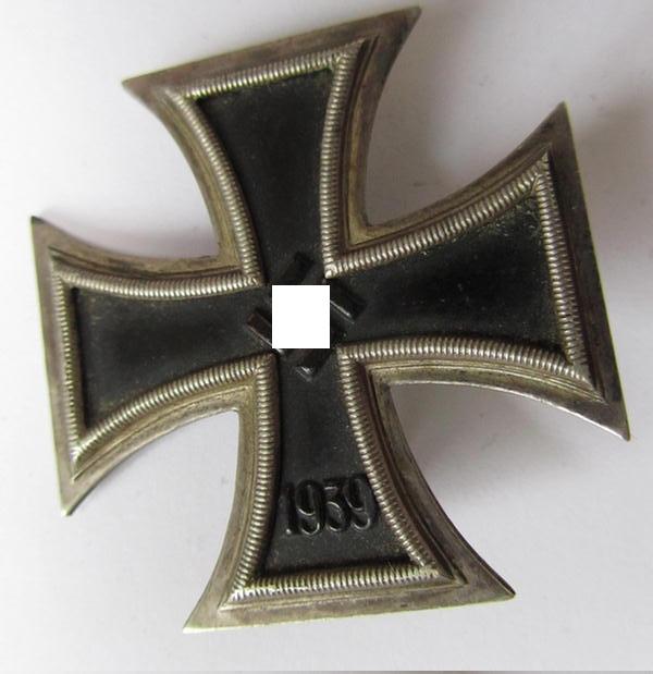 This is a very nice (and most certainly rare and early!) example of an Iron Cross 1st class ('Eisernes Kreuz 1. Klasse'), which is executed in the so-called: 'Schinkel'-form, as issued and found. The neat cross - which is unmarked as usual - is totally uncleaned and has a very nice age patina (it shows some normal aging and signs of fair usage: mainly visible within the swastika-area). The black-coloured core shows no real damage whatsoever whereas the cross most certainly once had Hochpolierte Kanten (polished sides): these are however only partly present ie. visible. Of interest is also the fact that this is a three-pieced example (mostly these Schinkel ICs are constructed as one-piece examples). The differences between a 'Schinkel'-form cross - which is in fact a smaller variant as mounted in a WWI IC rim - and a regular type can easily be spotted when compared next to eachother. The cross is magnetic and comes on its complete (and fully functional) pin ie. pin-/catch set-up. The piece originates from a private household and was never before in a collection. Simply a very nice and truly rare item: only the first such piece I ever had on offer!
