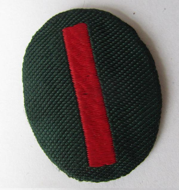 This is one of those rare little foreign-volunteer items that are almost impossible to find: a very nice - and very rarely encountered! - example of a WH foreign- ie. Russian volunteer cap-cocarde, executed in neat 'BeVo-weave' pattern, also officially known as: 'Kokarde für landeseigene Verbände (mit ausnahme von Turk.Btl. u.Kos.'), in overall very nice (IMO mint-/ie. unissued!) albeit confectioned condition. The tiny badge - only sized 3,2 x 2,5 cms. - depicts a bright-red coloured vertical 'bar' on a dark-green coloured background and was the officially German authorised version to be used by the various Russian volunteers (with the exception of the 'Turkistanian' and 'Kosak'-troops as is clearly shown in the official German description as above). The badge saw however no wide-spread usage and was quite impopular amongst the troops: being one of the reasons why it is such a rarely encountered badge! The piece on offer here is neatly 'backed' ie. 'stiffened' with a piece of reddish-coloured carton as per regulation. This is the first- and most likely only! - example I can ever offer for sale: I deem that only a handfull of these very rare insignia have survived ie. are in collections today. Simply one of the most desirable and rare 'foreign volunteer' cocardes in existance today!