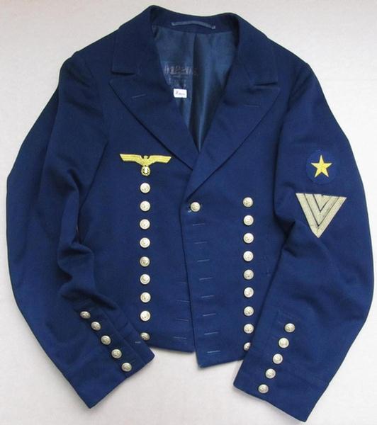 This is a truly very nice - and totally original! - example of a WH (Kriegsmarine) dark-blue woolen dress-tunic or Messejacke, as worn by the KM-Hauptgefreiter u. Bootsmann Haase, in overall very nice and totally undamaged ie. unaltered condition. The tunic is executed in very fine quality (almost smooth-type) wool and comes with all originally attached golden-toned (ie. Feuervergoldete) buttons (all showing the anchor-symbol). The tunic shows a nice array of (period-attached by hand) KM badges: such as neat KM breast-eagle, Bootsmannslaufbahnabzeichen and Hauptgefreiterwinkel (ie.chevron) which are all three nice and detailed machine-woven examples as executed in golden-yellow coloured linnen on a dark-blue woolen background. The tunic shows a black-coloured lining which is neatly ink-stamped with Haases KM-number that read: 01220/33 (as was prescribed per regulation): next to this does the tunic show a white-linnen and red-embroidered name-etiket that simply reads: Haase. The neat closing device (or Kettchen) is also still present (something that is most certainly not often the case!). The tunic furthermore shows two award-loops (as naturally used to display his awards). The piece originates from a private household and was never before in a collection. The overall condition is simply excellent: it is totally void of any damage nor repairs and comes as new as issued and/or worn. Simply a very nice occasion to obtain a totally original and unaltered Kriegsmarine tunic for an IMO very interesting price!