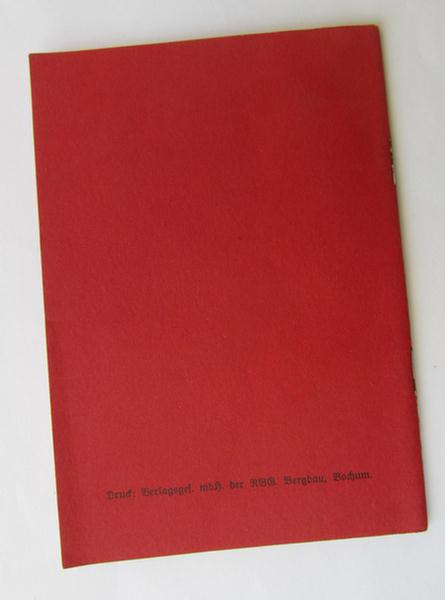 This is an interesting 'DAF'- (ie. 'Deutsches Arbeitsfront') related period-booklet entitled: 'Bestimmungen über die Zugehörigkeit zur Deutschen Arbeitsfront' that is dated: 1937 and that comes in an overall nice- albeit clearly used but fully complete, condition. The medium-sized publication (sized: 15 x 10,5 cms.) contains 32 pages full of (membership-) information related to this organisation. It is fully complete but does show some minimal age, simply caused by moderate usage and/or years of storage. Simply a nice and most certainly not that commonly encountered booklet!