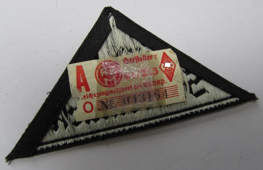 Attractive, 'HJ' ('Hitlerjugend') ie. 'BDM' ('Bund Deutscher Mädel'-) district-triangle (ie. 'Gebietsdreieck') entitled: 'Südost Steiermark' (being a 'virtually mint- ie. unissued' example that still retains its paper-based 'RzM'-etiket)