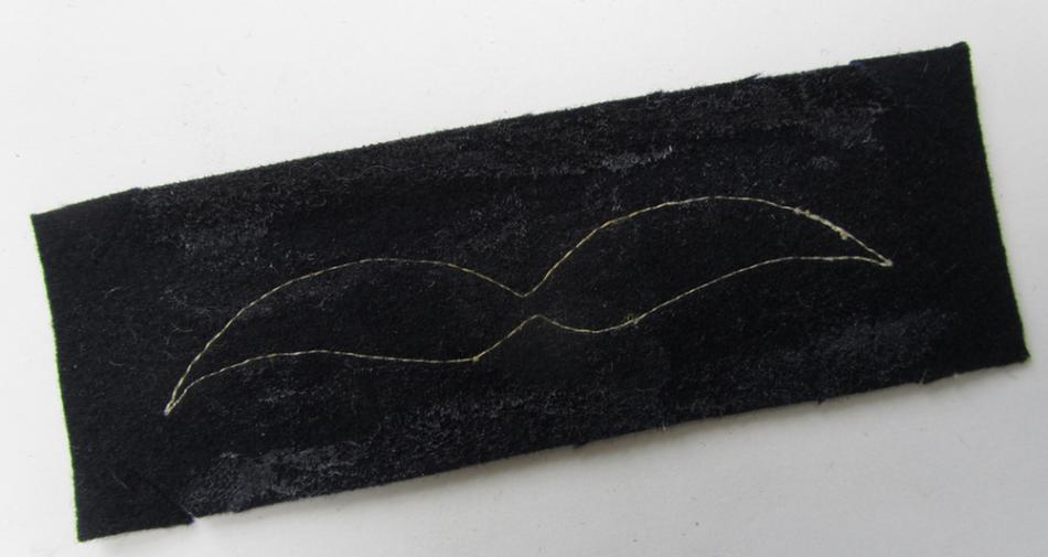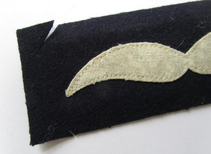 Nice - and scarcely encountered, albeit regrettably single - WH (Luftwaffe), dark-blue coloured and/or woolen-based, NCO-type rank-patch (aka 'moustache'), as intended for an: 'Unteroffizier' - very nice (IMO virtually mint-/unissued!) condition!