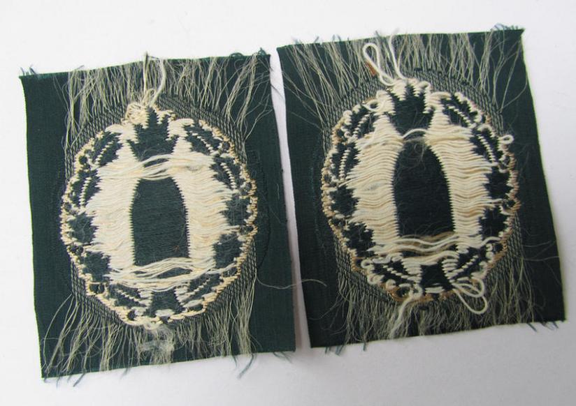 I recently uncovered two - fully identical - examples of the WH (Heeres) 'Richtabzeichen für Artillerie-Richtkannoniere' (or artillery gun-layers patch), both pieces as executed in the neat 'BeVo-weave' pattern, both in overall very nice (ie. virtually mint-/unissued-) condition. Both patches were never trimmed, folded nor confectioned and come as 'straightly cut-of the role': they just shows some minimal age ie. staining, simply caused by decades of storage only. The price is naturally intended per single piece. Simply a nice occasion to acquire an attractive 'Heeres' qualification-badge: almost impossible to find a better example for a better price!