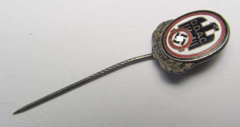 Attractive - and actually rarely seen! - silver-toned- and/or neatly enamelled, so-called: DDAC (ie. 'Der Deutsche Automobil Club') honorary-badge (or: 'Silberne Ehrennadel 1934') being a maker- (ie. 'Lauer-Nürnberg'-) marked example