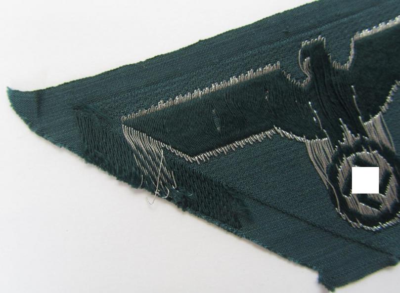 Attractive - and rarely encountered! - later-war-period-, WH (Heeres) ie. 'officers'-type-, so-called: 'M44'-pattern-, trapezoid-shaped breasteagle, being a silver-coloured example as executed in neat 'BeVo'-weave, flat-wire-pattern