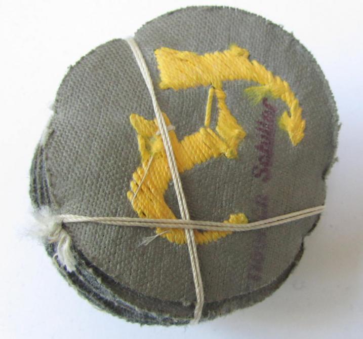 Attractive, WH (Heeres) so-called: trade- and/or special career arm-insignia, as was intended for a: army: 'Feuerwerker', being a neatly hand-embroidered variant on field-grey-coloured wool