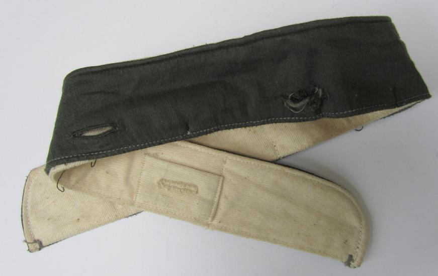 Neat, WH (Heeres, Waffen-SS etc.) greenish-coloured- and 'standard-issue'-pattern so-called: 'Kragenbinde' (or: uniform inner-collar), being a regular-issued and/or non-maker-marked example that comes in an overall nice- albeit worn- condition