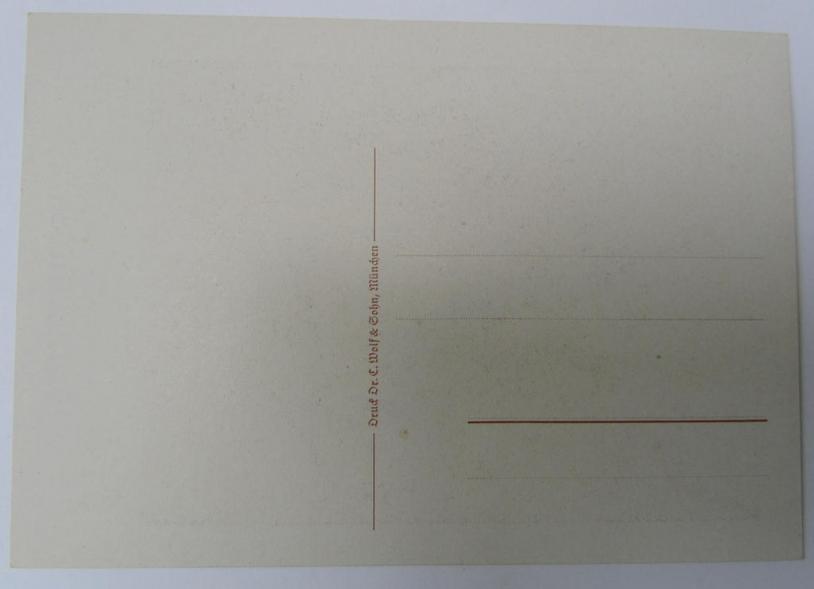 The neat card - showing an artist impression of a group of mountain-troop soldiers (ie. 'Gebirgsjäger') in action - comes in an overall very nice (ie. virtually mint-/unissued and/or never sent-, condition. It is totally void of any written text on the back and just shows minimal staining caused by decades of storage only (see pictures). It should be noted that these decorative, regimental commemorative cards are not that easily encountered and can easily be graded: 'fairly scarce'. Simply an attractive - and with certainty decorative! - 'Gebirgs-Jäger-Regiment 98 - Mittenwald'-related postcard that is IMO priced according to its desirability and/or comparative scarcity!