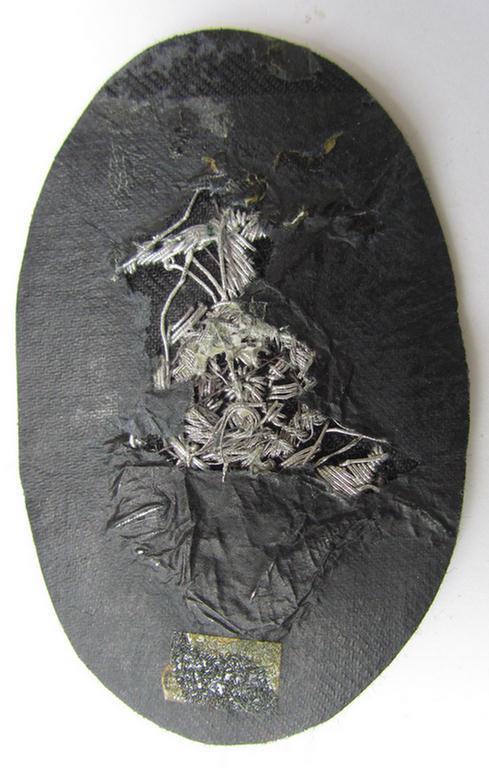 Superb, WH (Heeres) trade- or special-career insignia, being a very detailed- and/or hand-embroidered example on darker-green-coloured wool, as was intended for usage by a: 'Steuermann' (ie. enigineer boat-pilot or helmsman)