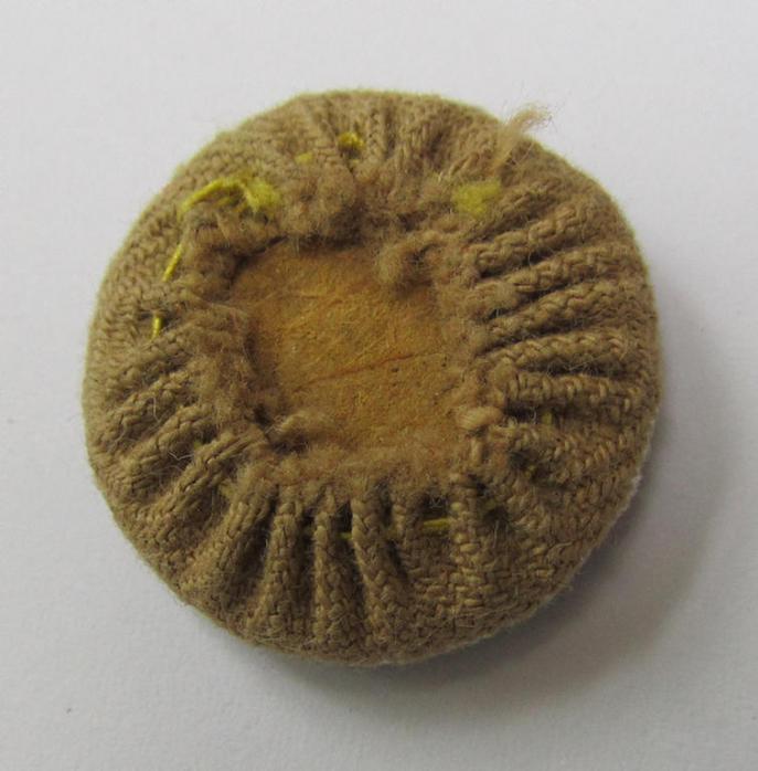 I recently found four - fully identical! - examples of the actually scarcely encountered! - WH (Luftwaffe) 'tropical-issue'- (ie. DAK-related-) side-cap-cocarde (ie. 'Kokarde für Tropen-Schiffchen') all four pieces coming in an overall very nice (IMO never used- nor side-cap-attached-), condition. It should be noted that these tropical-style side-cap- (ie. 'Schiffchen'-) insignia-pieces are quite difficult to encounter (and come hardly ever for sale). All four pieces - which are neatly machine-embroidered on a slightly thicker-shaped and tan-coloured- and/or linnen-based background - have a carton-based ïnner-section and show some minimal storage-age only and can excellently be used to complete any beige-coloured-, tropical-issue side-cap (ie. 'Luftwaffe Tropenschiffchen'). The asking-price is naturally intended per single cocarde. Simply a very attractive Luftwaffe-related tropical-issued side-cap insignia-set which is actually very hard to encounter and that is IMO accordingly priced!