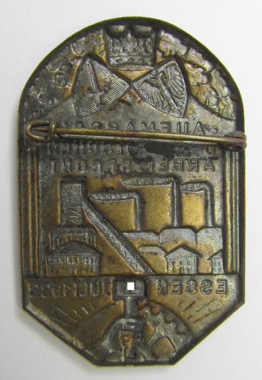DAF- (ie. 'Deutsches Arbeitsfront') ie. N.S.B.O.- (ie.: 'National-Sozialistischer Betriebszellen-Organisation'-) related day-badge (ie. 'tinnie'), as was issued to commemorate the: 'Aufmarsch der deutschen Arbeitsfront - Essen Juli 1933'