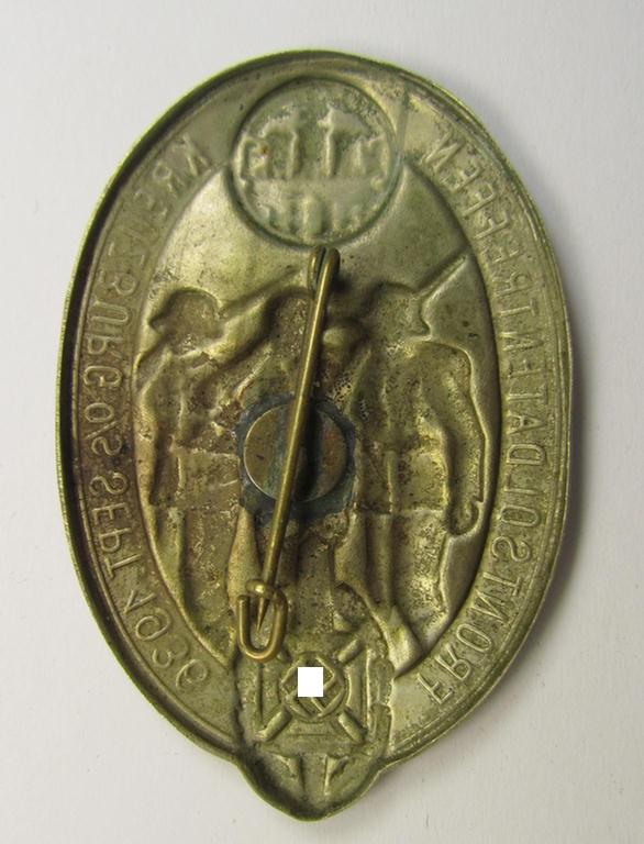 Commemorative, silver-toned and/or tin-based: 'N.S.K.O.V.'-related 'tinnie', being a non-maker marked example, showing the text: 'Frontsoldatentreffen - Kreuzburg o.S. - September 1936'