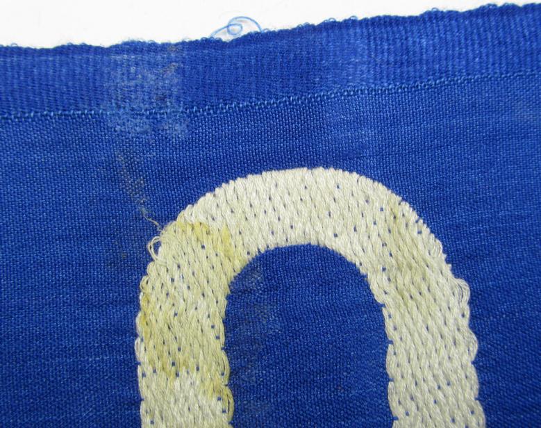 Linnen-based- and/or bright-blue-coloured armband (ie. 'Armbinde') depicting an interwoven capital 'O'-character, as was presumably intended for staff-members of the German RLB (ie. 'Reichsluftschutz-Bund')