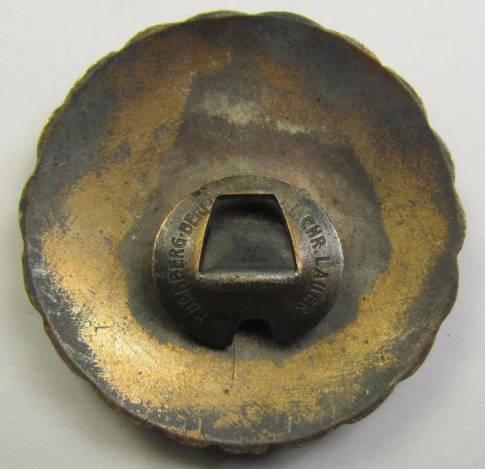 The attractive - and actually scarcely seen! - TR-era lapel-pin has been moderately used ie. worn but has a very nicely preserved age-patina and has most certainly never been cleaned nor polished: it is showing normal wear but is totally void of any (enamel-) damage (as can be seen on the pictures): just some regular wear ie. minimal scratches are noticable. The badge - ie. honorary award - shows moreover a somewhat tarnished- (ie. minimally stained-) finish ie. age-patina as can be seen from the pictures. This example - which has an approximate diameter of 4,2 cms. - shows a black-coloured (ie. enamelled) capital 'R'-character and black-coloured rim (plus silver-coloured oakleave-wreath denoting the silver-class) and comes mounted on its typical 'button-hole' set-up which is naturally still fully functional and/or present. The piece is neatly maker-marked and shows the makers'-designation: 'L.Chr. Lauer - Nürnberg-Berlin' on its back. A similar example is also figured in the 'Heering-Hüsken'-lapel-pin-catalogue, wherein it is given the unique reference-number (2126B) and an estimated value of 95 Eu. Simply an attractive membership lapel-pin ie. honorary award that belonged to a member of the: 'Zentralverband für Zucht und Prüfung deutscher Pferde'!
