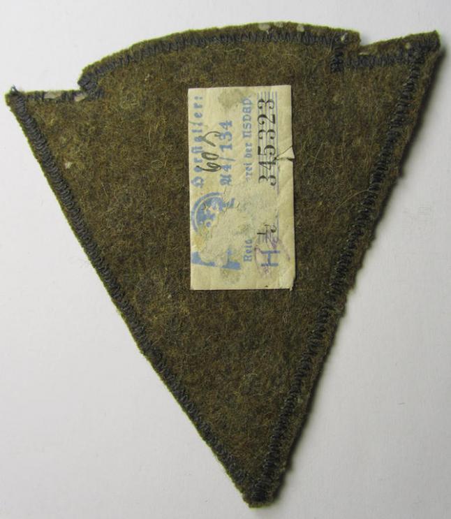 Unusally seen - and actually scarcely encountered! - N.S.K.K. (ie. 'National Socialistisches Kraftfahr Korps') so-called: 'N.S.K.K.-Ärmelabzeichen' showing a combined arm-eagle and/or chevron and period-attached 'RzM-etiket'