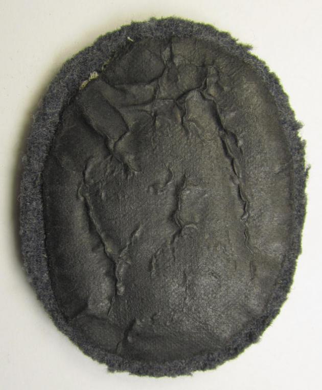 This an attractive - and actually not that easily encountered! - WH (Luftwaffe) 'Fallschirmschützen-Abzeichen in Stoff' (or: cloth-based, paratroopers'-jump-badge) that is neatly machine-embroidered in multi-coloured- (and linnen-based-) thread and being of the neat, so-called: 'off-factory'-'padded version' and that comes in an overall very nice- (I deem clearly used- ie. once tunic-attached-), condition. This particular example has great pronounced detail and is made more 'thicker' by the producing-company in order to closely resemble its metal-based counterparts. The piece is nicely 'backed' with black-coloured- paper as is more often encountered (which 'backing' is completely present as can be seen on the pictures). The badge was surely issued and once tunic-attached: it shows some age and/or staining simply caused by decades of storage and/or fair wear. These cloth-based versions were preferred by the soldiers, NCOs and/or officers 'stationed in the field' for obvious reasons. Simply an attractive and fully 'text-book' example of a WH (Luftwaffe) 'Fallschirmschützen-Abzeichen in Stoff' that is accordingly priced!