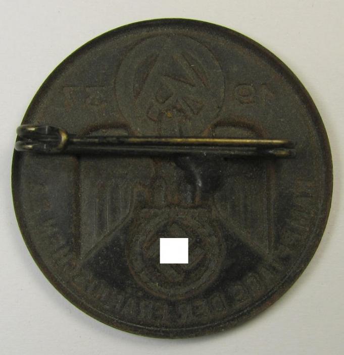 Commemorative- and/or pot-metal-based, darker-bronze-coloured SA-related 'tinnie' being a non-maker-marked example showing a detailed eagle-device, SA-logo- and text: 'Kampftage der Fränkischen SA - 1937'