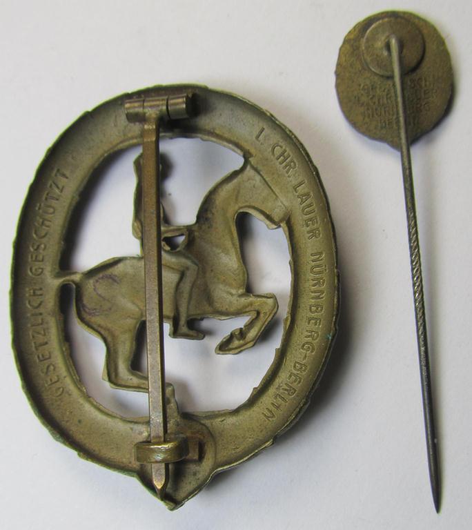 Attractive - and actually fairly scarcely encountered! - so-called: 'Deutsches Reiterabzeichen der 3. Klasse (ie. 'in Bronze') being a maker- (ie. 'L.Chr. Lauer'-) marked example that comes together with its accompanying 'Halbminiatur'