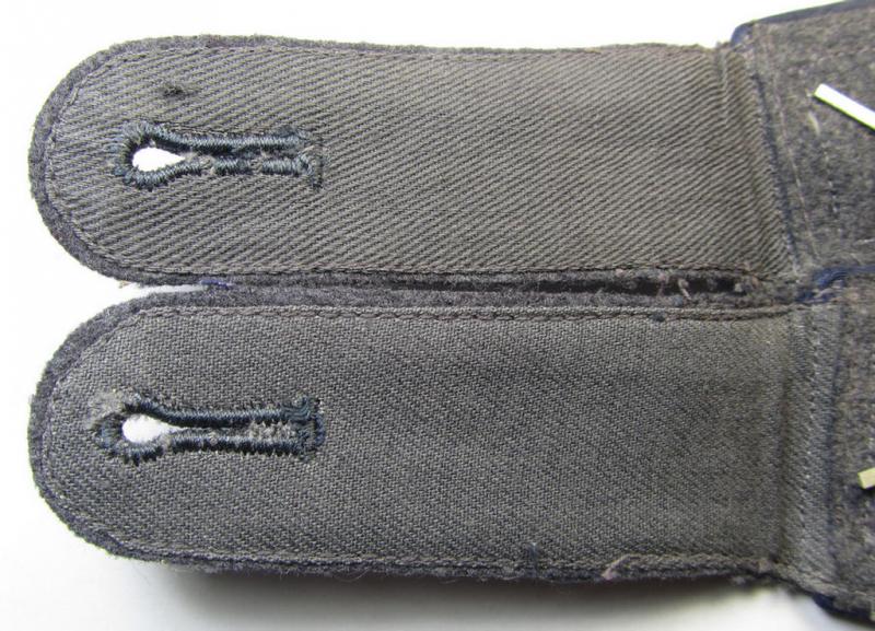 Superb - and/or fully matching! - neatly 'cyphered' pair of WH (Luftwaffe) NCO-type shoulderstraps as piped in the darker-blue-coloured branchcolour as was intended for a: 'Feldwebel der Sanitäts-Truppen'