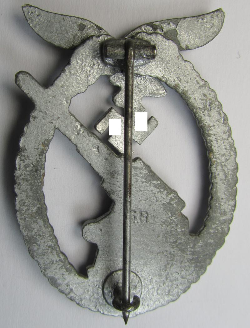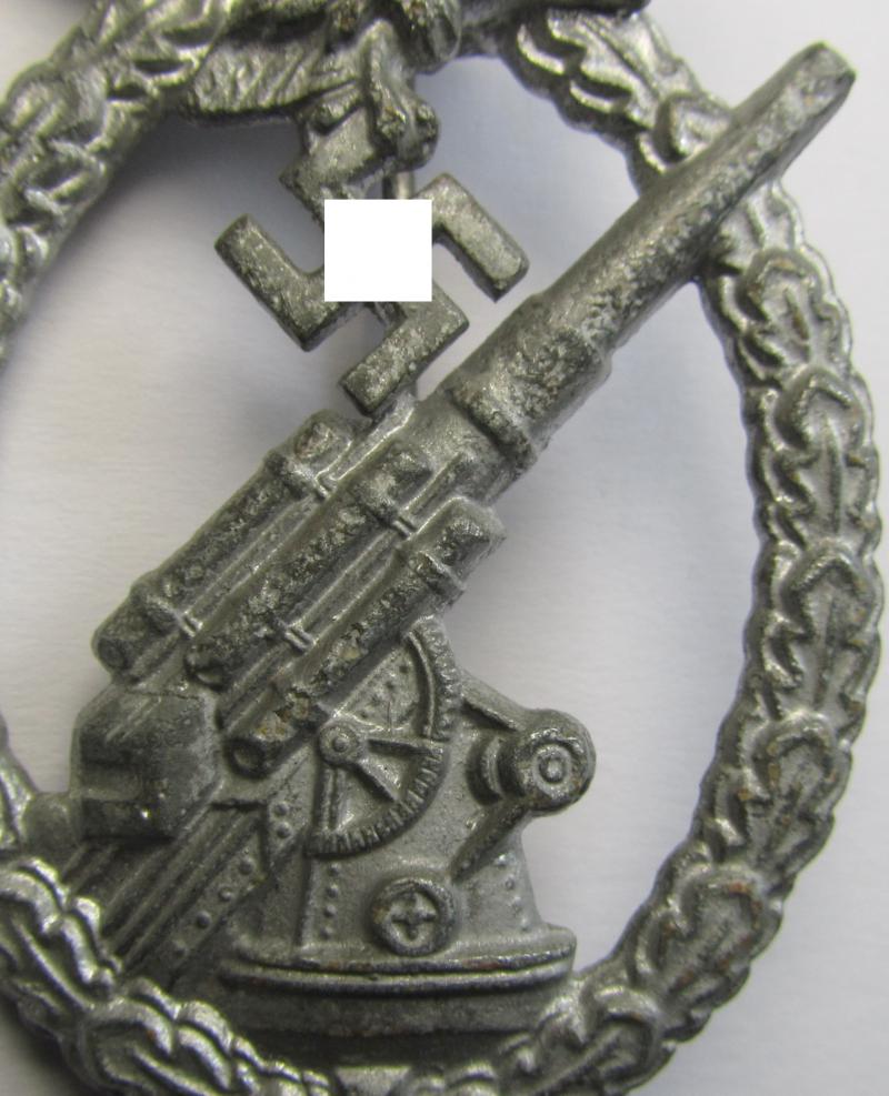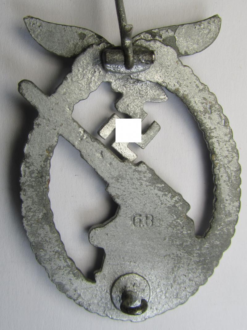 Attractive, later-war period- and/or: 'Feinzink'-based- example of a maker- (ie. 'GB'-) marked WH (Luftwaffe) 'Flakkampfabzeichen' (or: airforce anti-aircraft badge) being a detailed example as was produced by the: 'Gustav Brehmer'-company