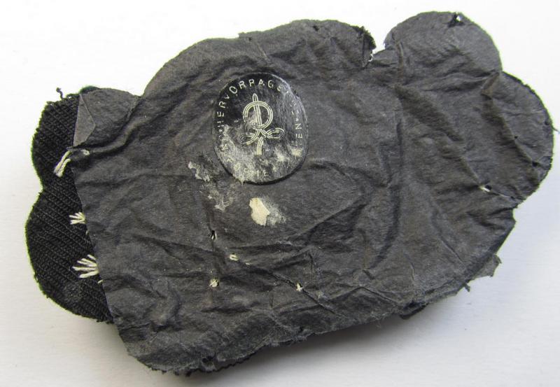 This is an attractive - and/or neatly detailed! - example of a (partly) hand-embroidered, WH (Heeres) officers'- (ie. NCO-) type cap-cocarde (ie: 'Kokarde für Schirmmütze') that comes in an overall very nice- (I deem just minimally used- ie. once-visor-cap-attached-), condition. This example is nicely hand-embroidered using various kinds of (bright and shiny-) silver-coloured braid on a darker-green-coloured (and/or woolen-based-) background and shows some 'high-lighted'-areas executed in somewhat differently coloured braid (as can be seen on the pictures). Moreover, does this example show a neat metal- (ie. zinc-) based inner-cocarde (something that is actually quite unusual) This example just minimally used and/or once cap-attached but is void of any staining ie. corroded areas (as can be seen on the pictures). The cocarde shows a black-coloured, thin-shaped, paper-based 'backing' (that shows an interesting makers'-etiket as can be seen on the pictures!) as more often observed and is quite 'thick' in execution (as can be seen on the pictures). Simply a very nice example that can naturally easily be (re)attached to any 'Heeres' officers'- (ie. NCO-) type 'Schirmmütze'!