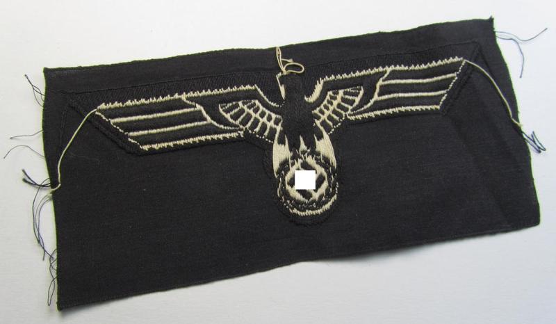 Neat, WH (Heeres) early- (ie. pre-) war-period- and/or white-coloured 'Panzer'-type breast-eagle of the so-called: 'M35'- (ie.'M36'-) pattern as was executed in the neat 'BeVo'-weave pattern on a black-coloured background