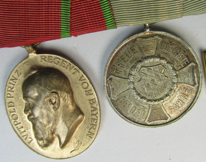 Attractive, 3-pieced 'Bayern'- (ie. TR-) related medal-bar (ie. 'Ordenspange') resp. depicting a WWI-period: 'Bayr. Jubiläumsmedaille für die Armee 1905', a: Bayr. DA 3.Kl. 1913' and a TR-period: 'TD-Ez. der 1.Kl.'