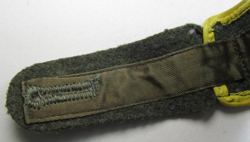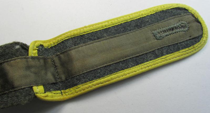 Single, later-war-period, so-called: 'M44'-pattern, simplified WH (Heeres) enlisted-mens'-type shoulderstrap as piped in the bright-yellow-coloured branchcolour as was intended for usage by a: 'Soldat der Nachrichten-Truppen'
