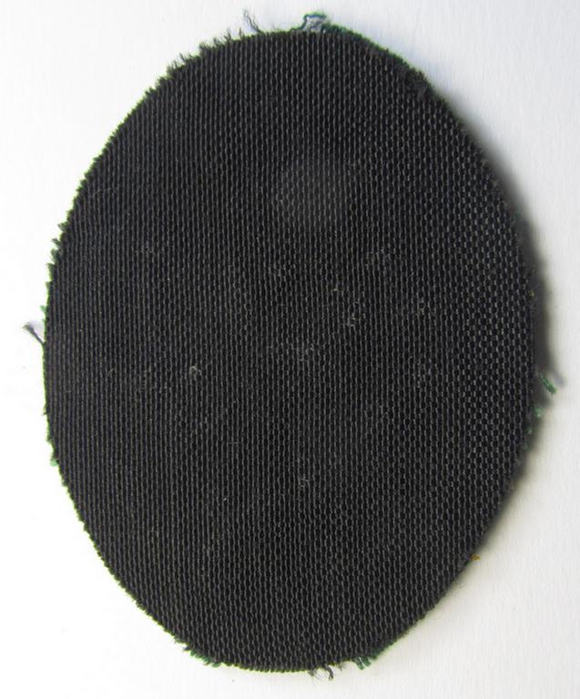 This is an attractive, WH (Heeres) enlisted-mens'- (ie. NCO-) type, so-called: 'Edelweiss'-armpatch, being a machine-embroidered (and somewhat 'thicker-styled'!) example as was executed on darker-green wool as was intended for usage by the: 'Gebirgsjäger-Truppen' throughout the war and that comes in an overall very nice- (ie. simply never used- ie. 'virtually mint- ie. unissued'-), condition. The - truly detailed and nicely executed! - piece is additionally 'backed' with a piece of black-coloured linnen as more often and comes stitched onto a piece of darker-green-coloured wool (as can be seen on the pictures). Simply a nice occasion to acquire an attractive 'variant'-pattern, machine-embroidered 'Gebirgsjäger-Edelweiss'-armpatch for a competitive price!