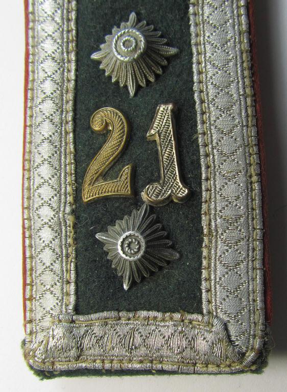 Neat - albeit regrettably single! - pre- (ie. early-) war-period, WH (Heeres) 'M36 o. M40'-) pattern (rounded-style) 'cyphered', NCO-type shoulderstrap as was intended for an: 'Oberfeldwebel u. Mitglied des Art.-Rgts. 21'