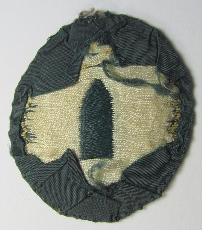 Neat - moderately used- and/or worn! - example of a WH (Heeres) 'Richtabzeichen für Artillerie-Richtkannoniere' (or: artillery gun-layers patch) as executed in neat 'BeVo-weave'-pattern (and that comes in a carefully tunic-removed condition)
