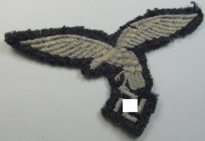 Moderately used- and/or tunic-removed, WH (Luftwaffe) EM- (ie NCO-) pattern, machine-embroidered breast-eagle (showing a 'down-tailed'-eagle and being an early- ie. pre-war-period example) that comes in a moderately used-, condition