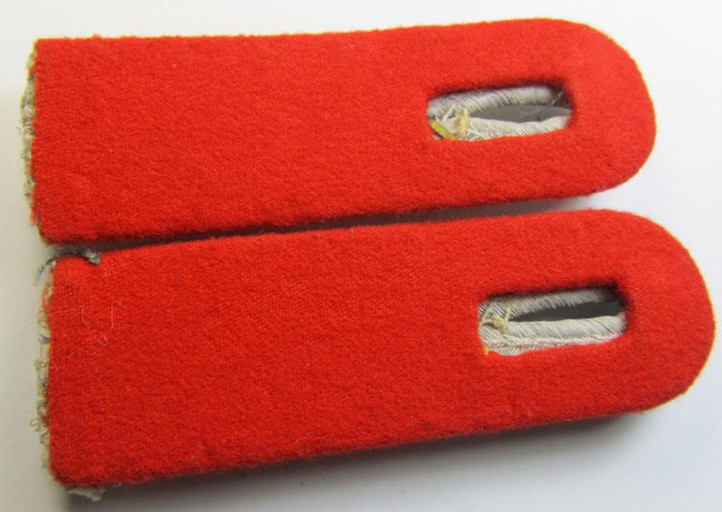 Attractive - and fully matching! - pair of WH (Heeres) officers'-type shoulderboards as piped in the bright-red- (ie. 'hochroter'-) coloured branchcolour as was specifically intended for usage by a: 'Hauptmann eines (Sturm)Artillerie-Rgts. o. Abts.'