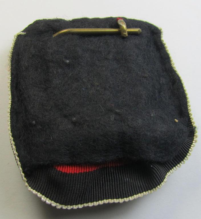 This is a very attractive example of a bright-golden-toned (and somewhat 'broad-shaped!), WH (Heeres o. Kriegsmarine etc.) so-called: 'Einzelspange' (or: single-pieced medal-bar) being of the 'standard-issued'- ie. 'detachable'-pattern and showing a WH Czech 'Anschluss'- (ie. occupation-) medal: '1 October 1938' (as was given to all members of the armed forces that participated in the German occupation of Czecoslovakia, which started on 1 October 1938) and that comes mounted onto its confectioned, black/red/black-coloured ribbon (ie. bar) as issued and/or minimally worn. The detail on this example is truly very nicely preserved: it has never been cleaned nor polished and has an attractive and somewhat 'frosted'- (ie. minimally tarnished) age-patina (as can be seen on the pictures). The medal comes 'mounted' onto a metal-based 'clasp' that is neatly 'backed' with a piece of black-coloured wool and that shows a functional pin- ie. pin/catch-set-up as was intended for wearing this example on a 'going-out'- ie. dress-tunic or 'Waffenrock'. Hard to find a more attractive WH Czech 'Anschluss'-medal that comes mounted as an: 'Einzelspange'!