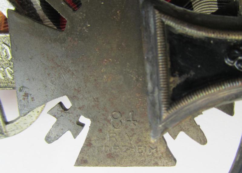 Attractive, WWI- (ie. TR-) period so-called: 'Ordenspange' (being of the non-'detachable-pattern') showing resp. an: 'EK II. Kl.'. a: 'FKK 1914-18 mit Schw.' and a (scarcely seen!): 'DRK-Ehrenzeichen des 3. Modell'