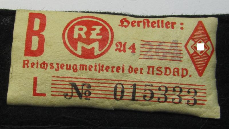 Neat - and naturally single! - black-piped 'DJ- o. Deutsches Jungvolk' shoulderstrap as was intended for usage by a: 'DJ-Mitglied' who served within the: 'Bann 183' (183 = 'Herford') and that comes with its period-attached 'RzM'-etiket