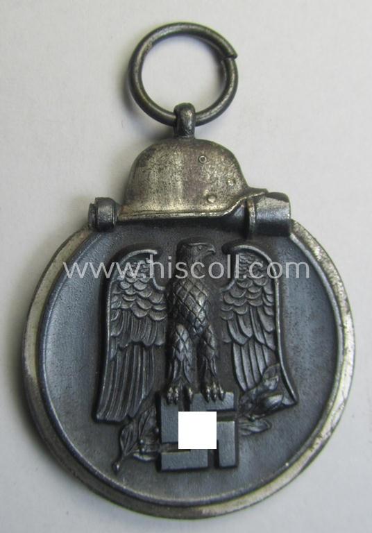Attractive medal-set: 'Winterschlacht im Osten 1941-42' being a maker- (ie. '14'-) marked- (and/or 'Feinzink'-based) specimen by the maker: 'L.Chr. Lauer' and that comes together with its (minimally confectioned) ribbon (ie. 'Bandabschnitt')