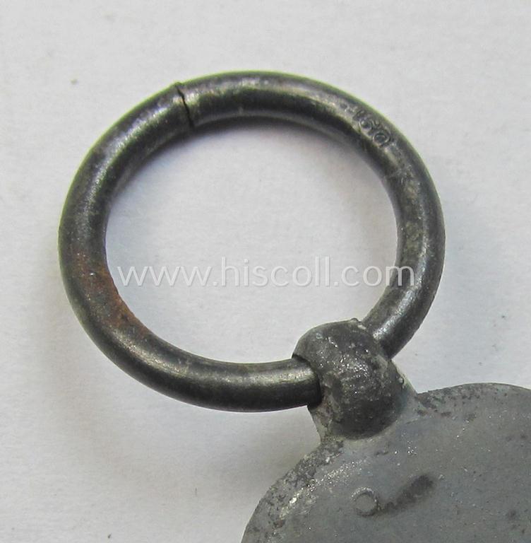 This is an attractive medal-set: 'Winterschlacht im Osten 1941-42' (ie. 'Ost'- or Eastern-Front medal) being a clearly maker- (ie. '60'-) marked- (and/or: typical zinc- ie. 'Feinzink'-based) specimen that was produced by the maker (ie. 'Hersteller') named: 'Katz & Deyhle' as was based in the town of Pforzheim and that comes together with its (minimally confectioned- and approx. 19 cm.-sized) ribbon (ie. 'Bandabschnitt') as issued and/or recently found. The piece - which is a very nicely preserved zinc- ie. 'Feinzink'-based specimen - was most certainly issued but hardly used. The award shows a somewhat 'shiny' (ie. greyish-blue-) coloured age-patina and was most certainly never cleaned nor polished and therefore are details and/or finish still nice and/or crisp. Simply an attractive, maker-marked example of a: 'Medaille Winterschlacht im Osten 1941-42' that is with certainty accordingly priced!