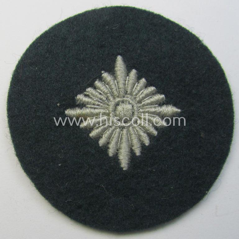 WH (Heeres) rank-insignia (ie. silver-grey-coloured and machine-embroidered 'roundel') as intended to identify a soldier with the rank of: 'Oberschütze', 'Oberjäger' etc. that comes in a 'virtually mint- ie. unissued', condition