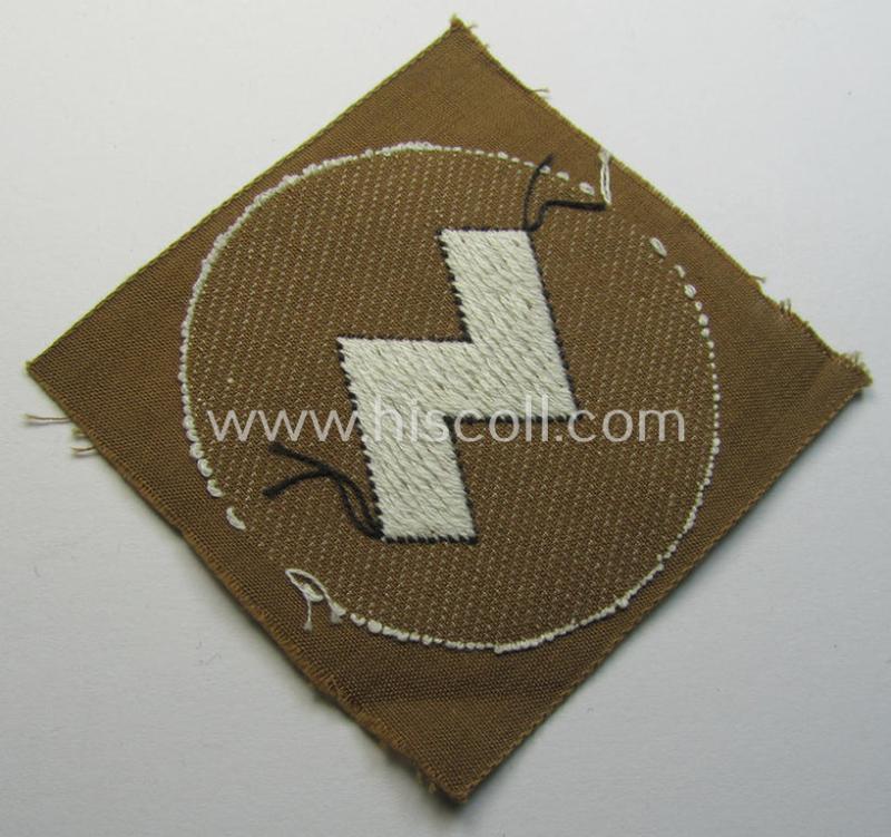 This is a very attractive - and truly rarely found! - DJ (ie. 'Deutsches Jungvolk') arm-badge as was intended for usage by a member who served within the: 'Oberbann 6' (ie. within one of the: 'Nationalpolitische Erziehungsanstalten' ie. 'Napola') and that comes in an overall very nice- (ie. never used- nor worn- ie. 'virtually mint- and unissued'-), condition. These 'Nationalpolitische Erziehungsanstalten' ie. 'Napola' were National Political Institutes of Education (officially abbreviated as: 'NPEA', however, commonly abbreviated as: 'Napola' for 'Nationalpolitische Lehranstalt' meaning National Political Institution of Teaching) were secondary boarding-schools in TR-Germany. They were founded as 'community education sites' after the National Socialist seizure of power in 1933. The black-coloured rune-sign - which is executed on a white-coloured background and is woven in the neat so-called: 'BeVo'-weave pattern as always - signifies that its bearer belonged to the: DJ 'Oberbann 6'. The badge - that is void of an RzM-etiket - shows some slight staining ie. dust simply caused by decades of storage only. Simply a very attractive - and truly rarely found! - example that will be impossible to be upgraded without doubt the most difficult to encounter of the series of six different ones!