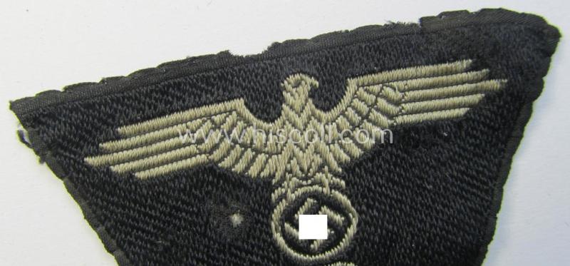 Attractive - and clearly used! - Waffen-SS black-coloured M43-pattern 'Panzer'-cap-trapezoid as executed in 'BeVo'-weave-pattern as was specifically intended for usage on the M43-model field-caps (ie. 'Einheitsfeldmützen')