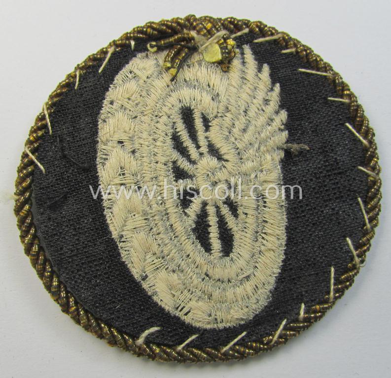 Attractive - albeit clearly used! - example of a WH (Luftwaffe) machine-embroidered, trade- ie. special-career-patch (ie. 'Tätigkeitsabzeichen') having a golden-coloured 'Goldkordel' attached as was intended for a: 'Schirrmeister o. Geräteverwalter'