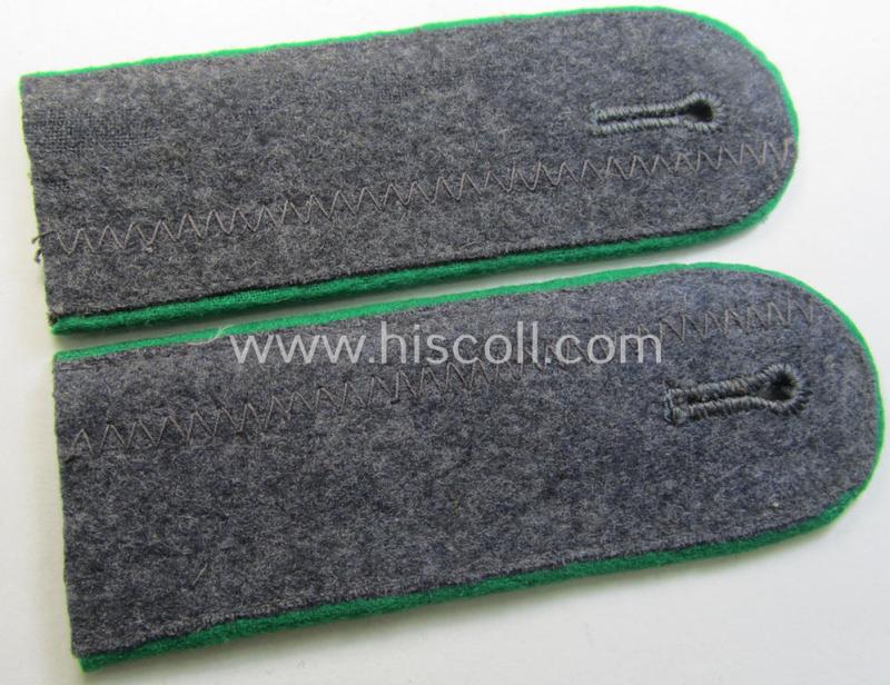 Attractive - scarcely found and/or fully matching! - pair of WH (Luftwaffe) enlisted-mens'-type shoulderstraps as piped in the typical green (ie. 'grüner'-) coloured branchcolour as was intended for a: 'Soldat der Luftwaffe-Felddivisionen'
