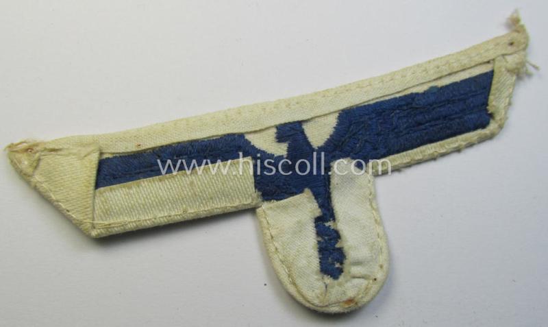 Neat, WH (KM) enlisted-mens'- (ie. NCO-) type, machine-embroidered breast-eagle as executed in darker-blue-coloured- and/or linnen-based material as was specifically intended for usage on the various white-coloured KM-tunics