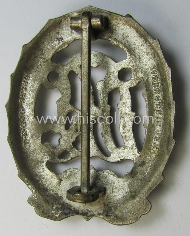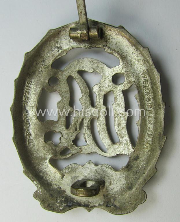 Attractive, 'Reichssportabzeichen DRL in Silber' (or: silver-class DRL sports'-badge) being a typical 'Buntmetall'-based example that is nicely maker- (ie. 'Wernstein - Jena'-) marked on its back